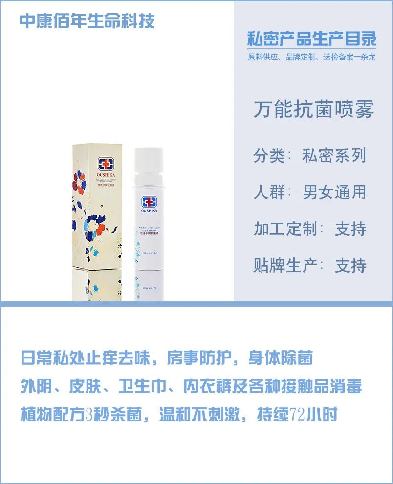 产品:万能抗菌液 特性:本品对大肠杆菌、金黄色葡萄球菌、白色念珠菌有较高的抑菌作用,在使用时能有效防止细菌感染 规格:展示样品为100ml(可根据定制需求做成各种包装) 使用方法:喷于皮肤表面。